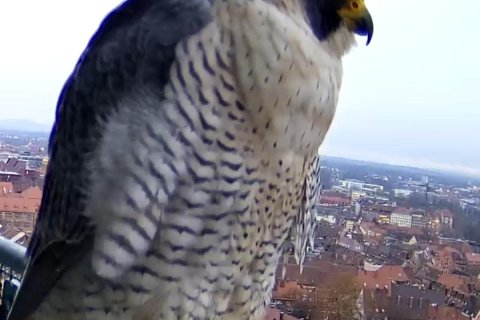 Nach der ersten Beuteübergabe und der ersten Paarung Ende Januar sind noch einige weitere gefolgt. Somit wurde der Nistplatz auch dieses Jahr wieder angenommen, sodass auch heuer wahrscheinlich wieder am Sinwellturm gebrütet wird. Im Laufe der nächsten Woche könnte dann auch schon ein erstes Ei zu sehen sein.