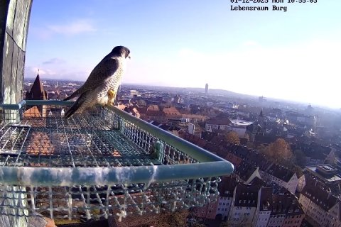 Bereits seit Ende Oktober wurden die Altvögel immer wieder dabei beobachtet, wie sie sich in die Brutmulde legen bzw. daran arbeiten. Ist das etwa schon Balzverhalten? Tatsächlich fällt das so genannte 'Mulde drehen' schon darunter. Obwohl es bis zum Brutbeginn noch mehrere Monate hin sind, testen die Altvögel bereits jetzt, ob der Brutplatz noch ihren Anforderungen entspricht bzw. bereiten diesen vor. Wenn alles passt folgen im Februar auch Balzflüge und Beuteübergaben und vielleicht auch ein paar Eier. Falls Sie sich die Zeit bis dahin noch etwas vertreiben möchten, testen Sie gerne ihr Wissen zu Wanderfalken oder lernen Sie die heimlichen Burgbewohner und ihre Lebensräume kennenlernen. Viel Spaß!