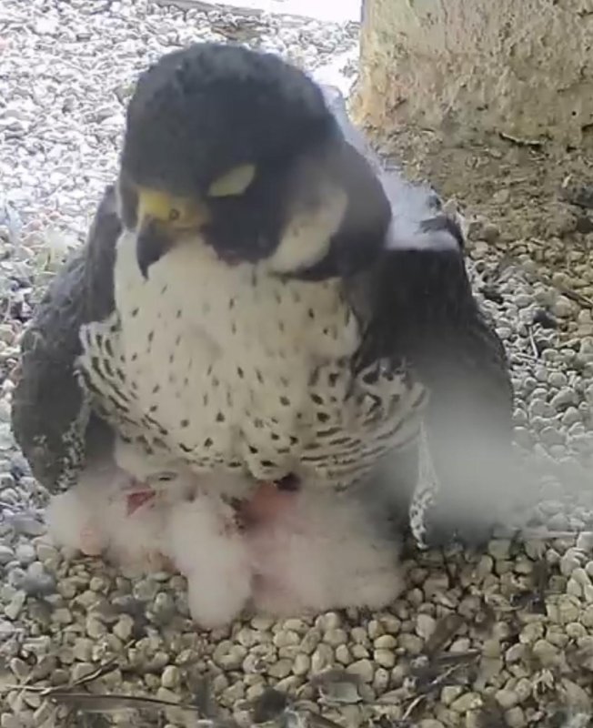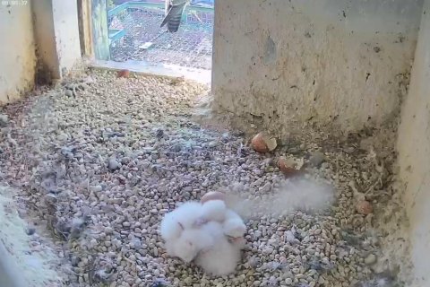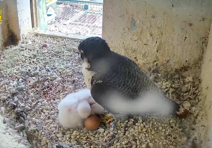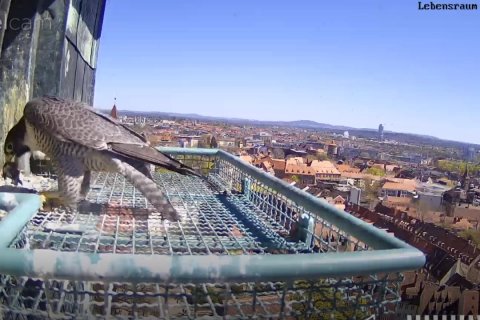 12:58 verließ der Altvogel den Brutplatz und kehrt mit Beute um 13:05 zurück (Foto)