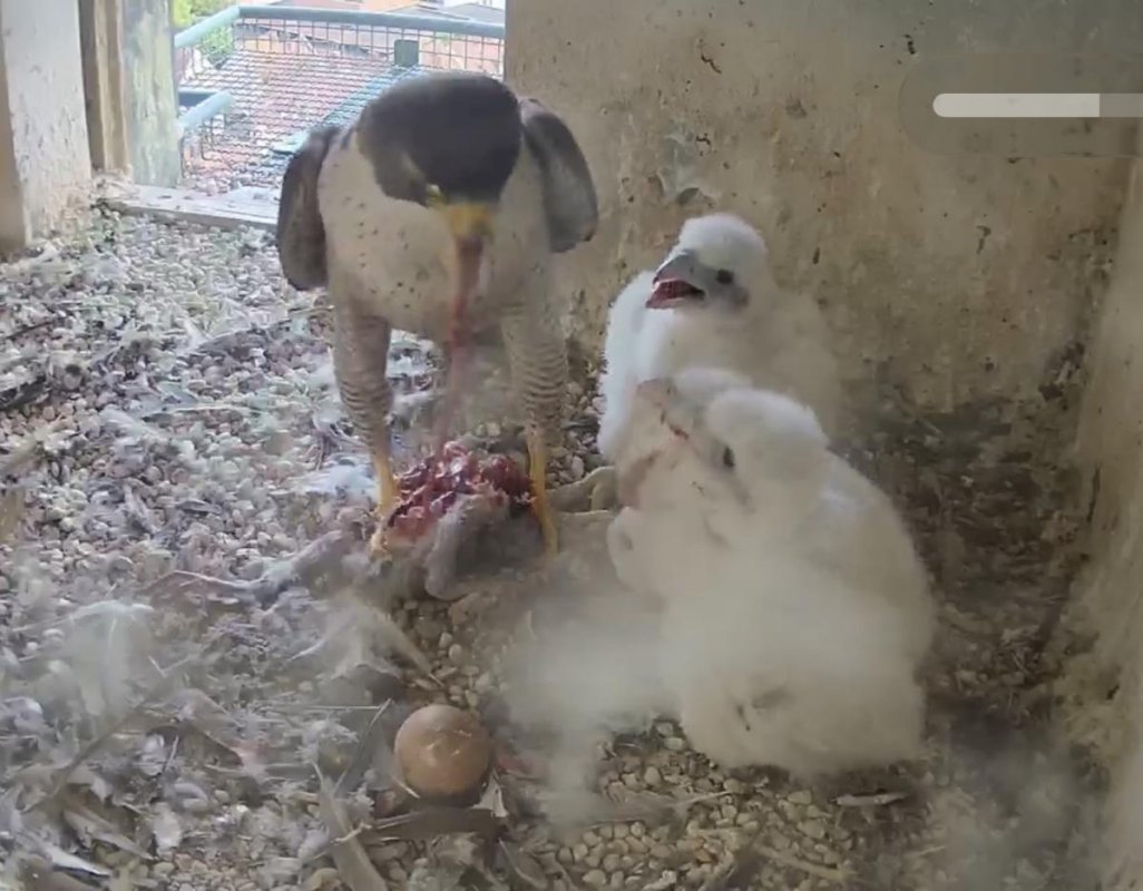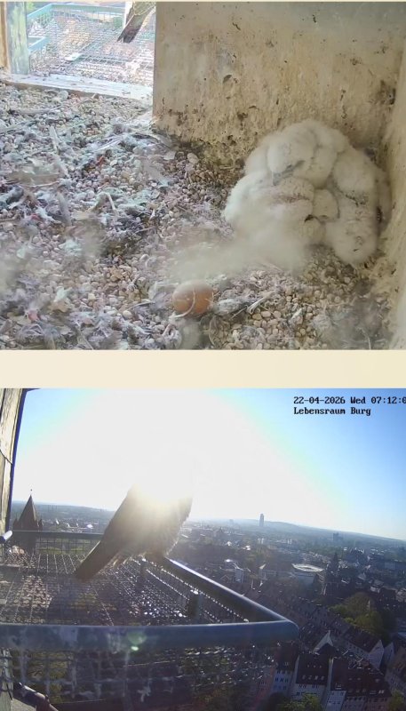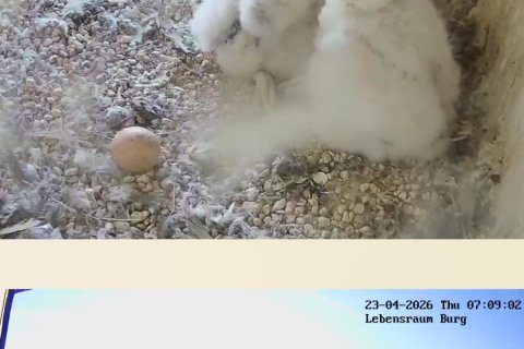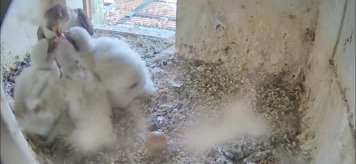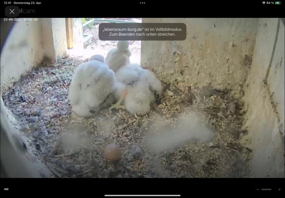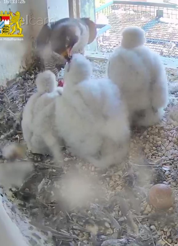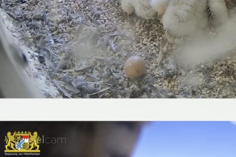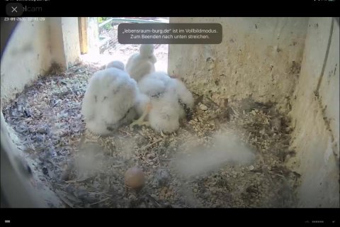 Lecker Abendessen mit drei Jungvögeln und einem leider wohl nicht mehr werdenden Ei.