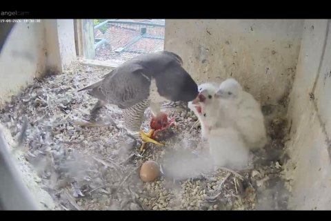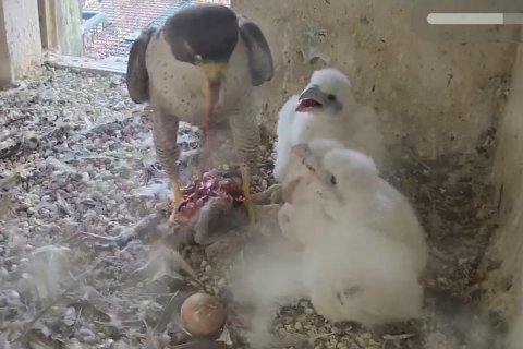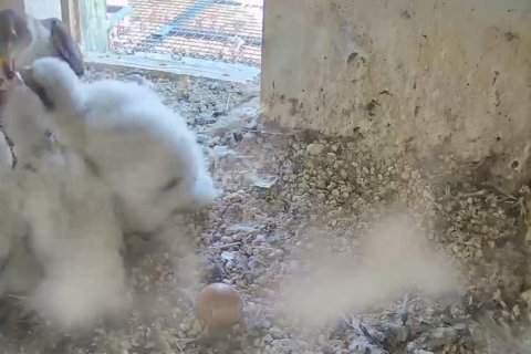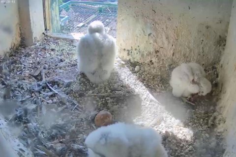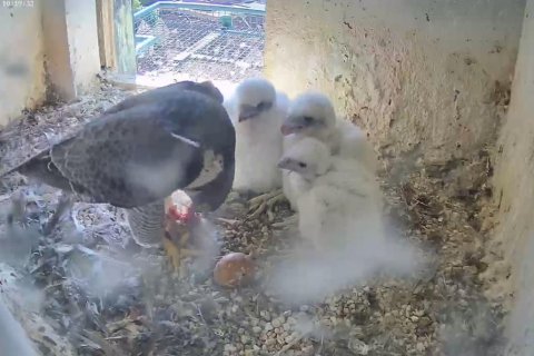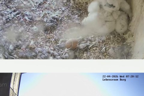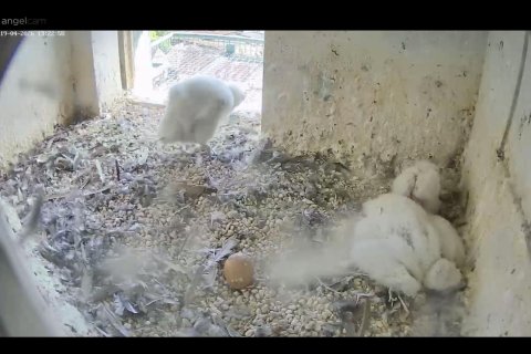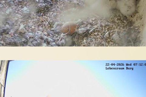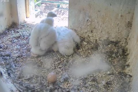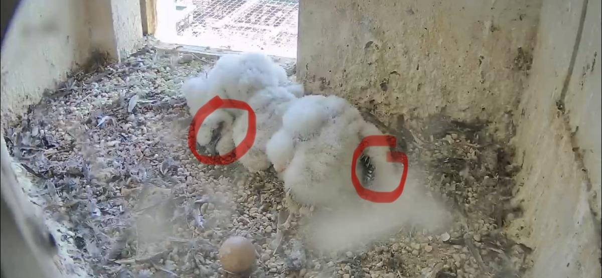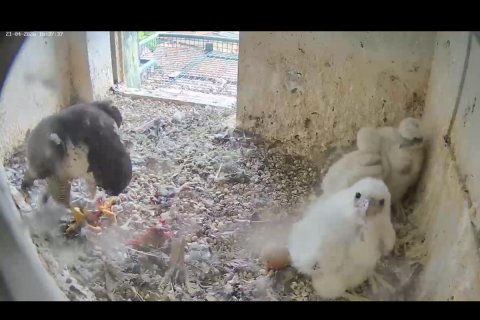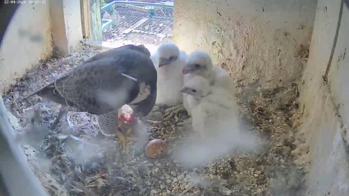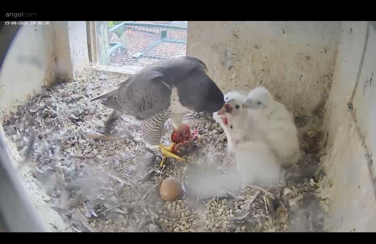 Lecker Abendessen mit drei Jungvögeln und einem leider wohl nicht mehr werdenden Ei.