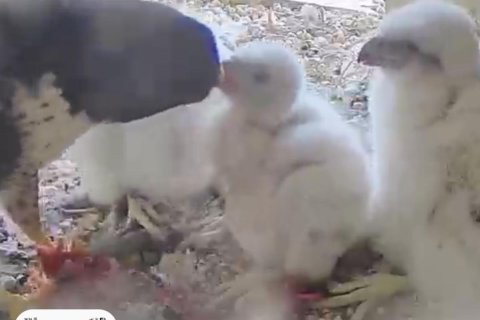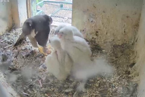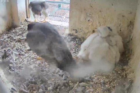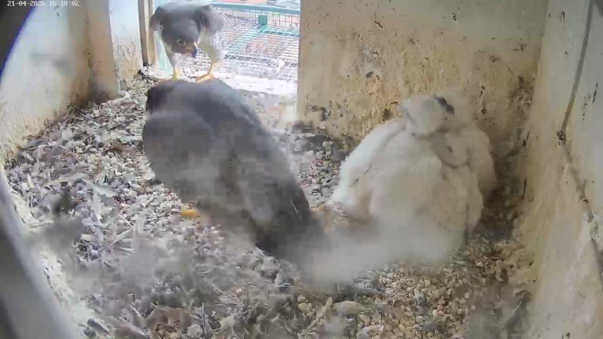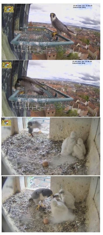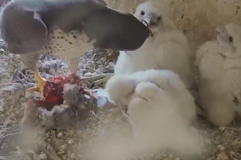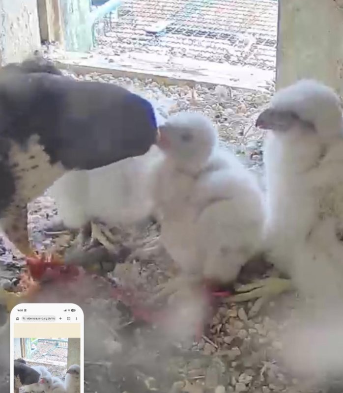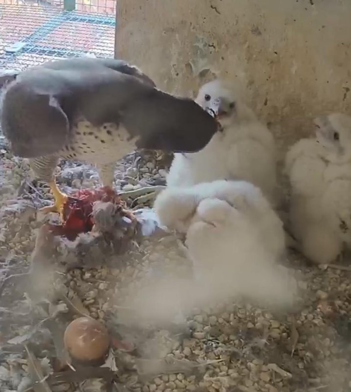 Mittlerweile warten die Kleinen nicht mehr bis sie gefüttert werden, sie holen sich ihren Anteil schon selber, direkt aus dem Schnabel der Mama 🤣🦅