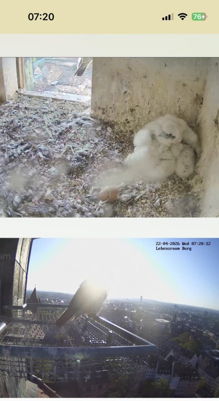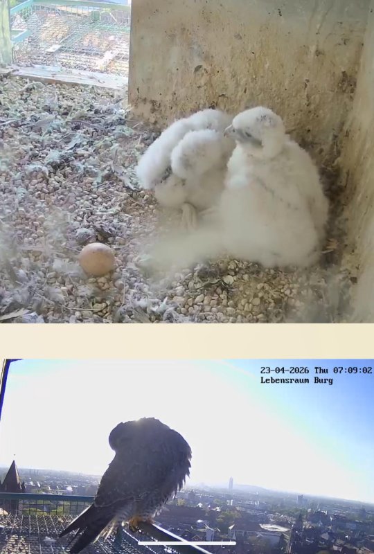 Fasziniert von der großen weiten Welt da draußen. 😮 Aber Mama wacht auf der Kamera darüber, dass Junior/in keine Dummheit macht 🤣🦅🪶