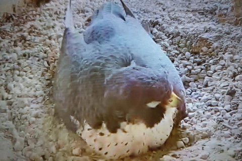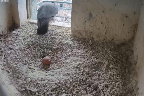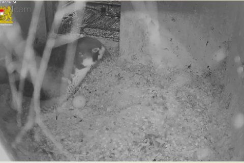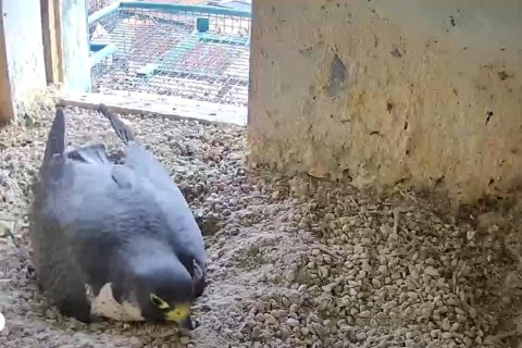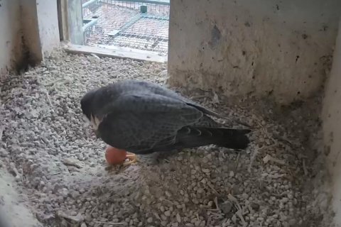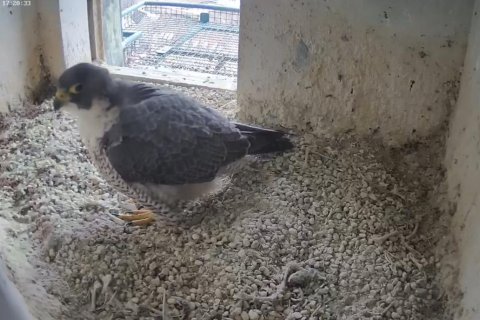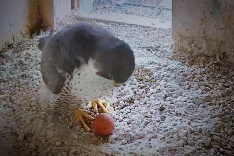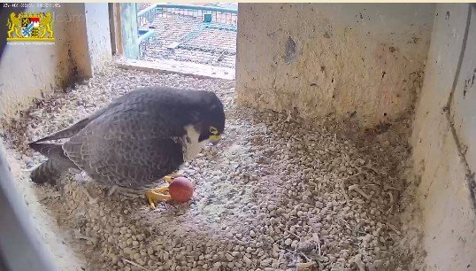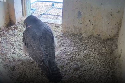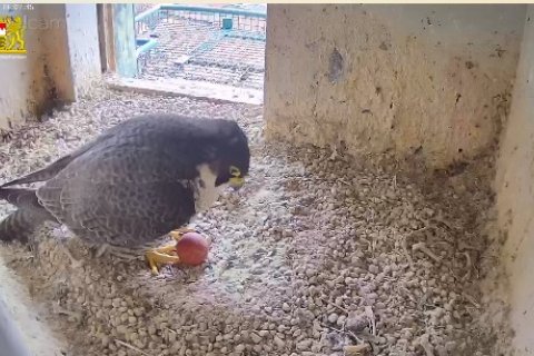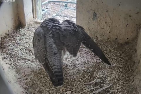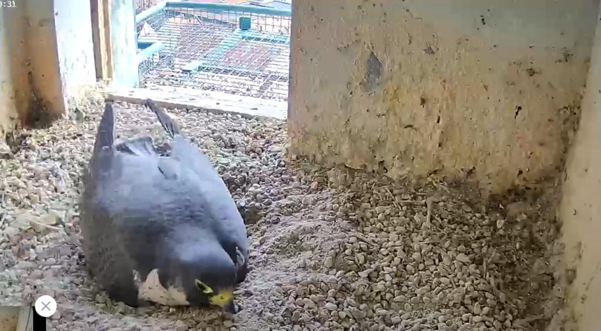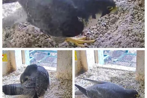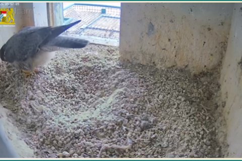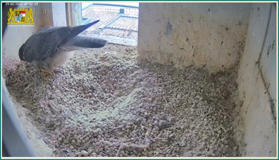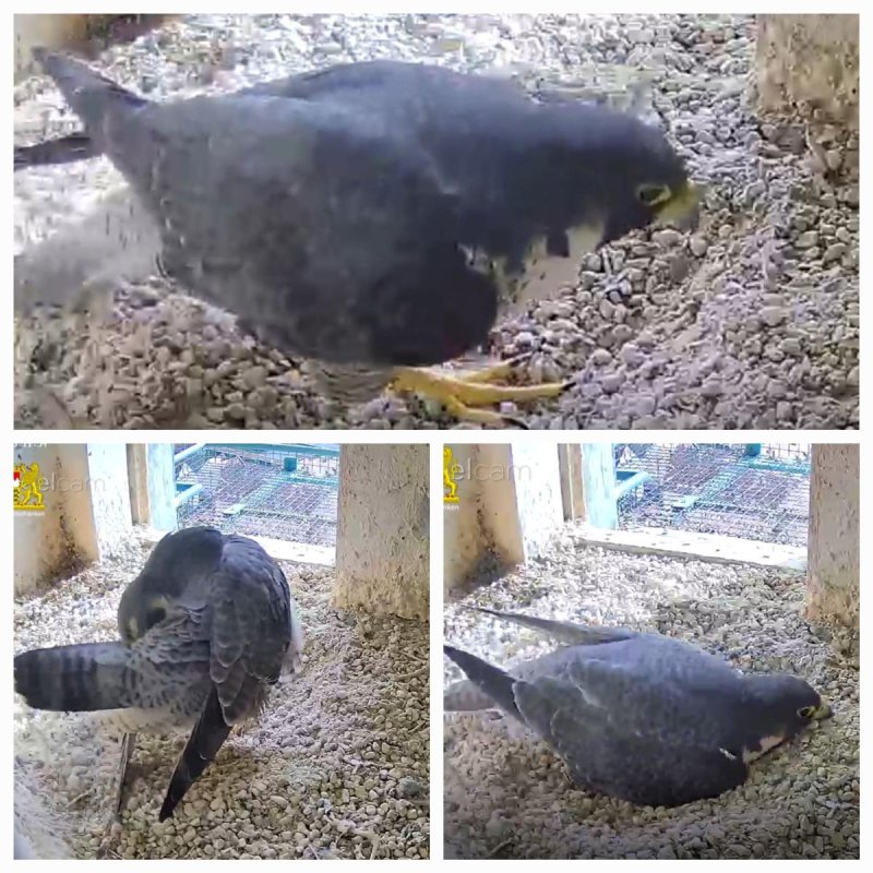 Das Weibchen überprüft die Mulde, putzt sich gründlich und sortiert Steinchen. Alles fein!🦅😍