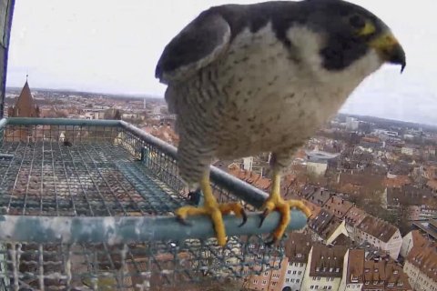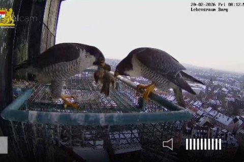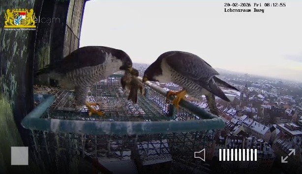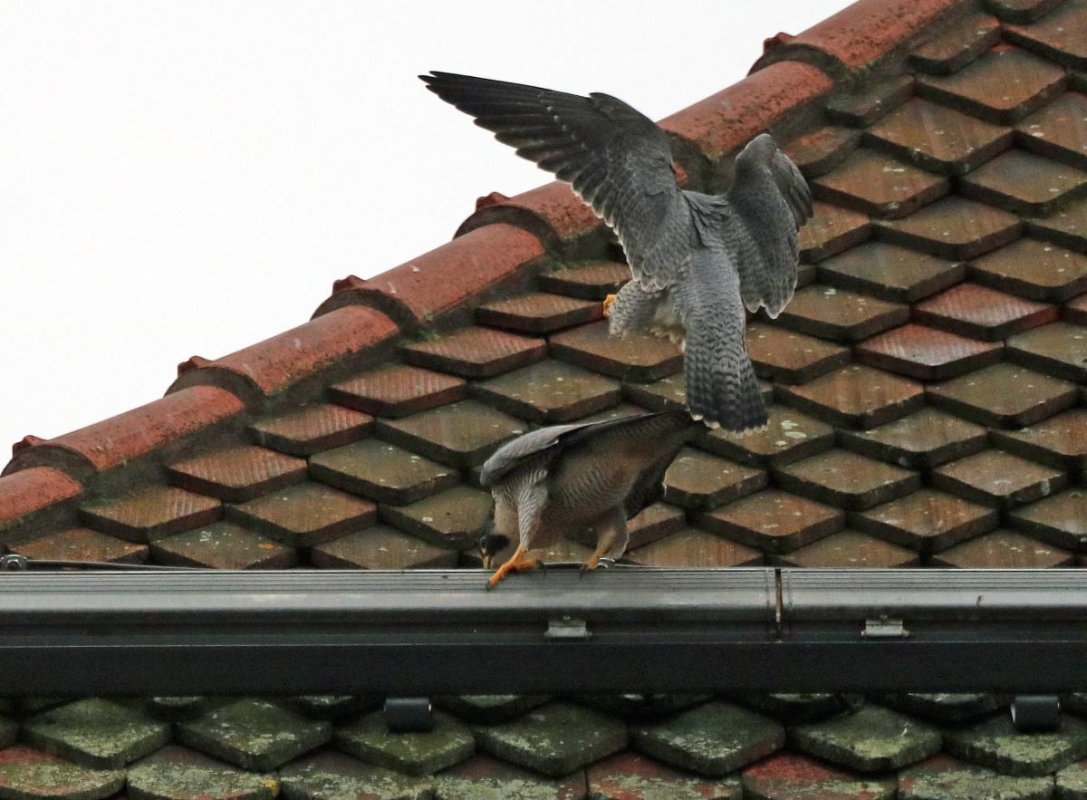 Schatzi, Frühstück ist fertig 😁! Auf dem Foto sieht man auch gut den Größenunterschied zwischen dem Terzel und dem Weibchen.