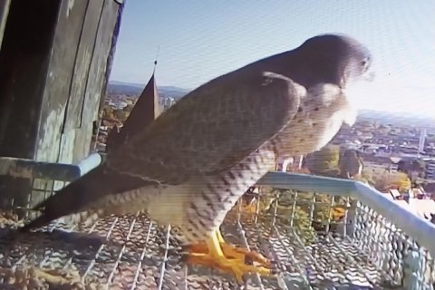 Samstag nachmittag: Ich rufe erst mal drinnen ganz laut, das schallt so schön! Dann halte ich draussen Ausschau, ob da vielleicht jemand kommt🦅🥰