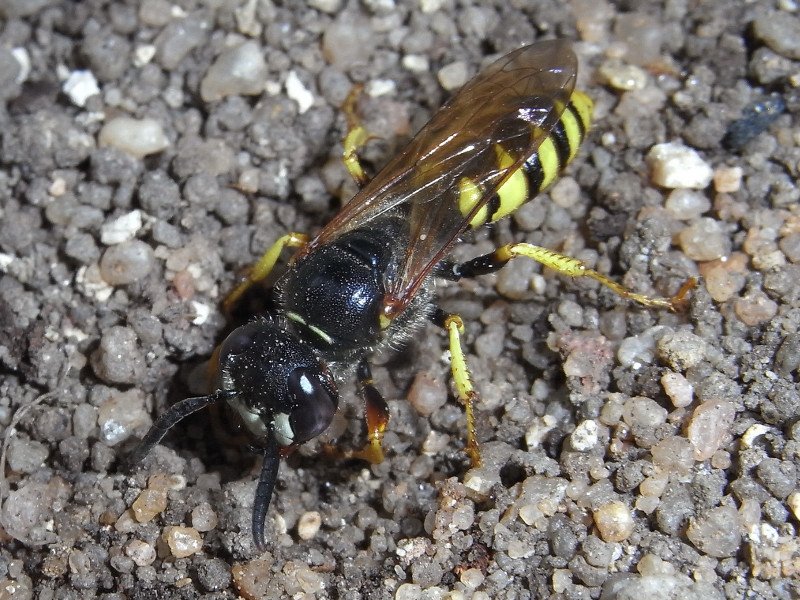 Der Bienenwolf gehört zu den Grabwespen. Er nistet in Sand und trägt gelähmte Honigbienen in sein Nest ein. Die Larven leben bis zur Verpuppung von diesen Vorräten.