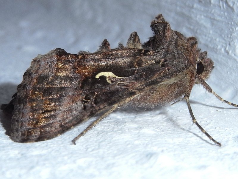 Die Gammaeule fliegt sowohl tags als auch nachts und liebt Gartenblumen. Sie ist leicht erkennbar an ihrer Flügelzeichnung in Form des griechischen Buchstaben Gamma.