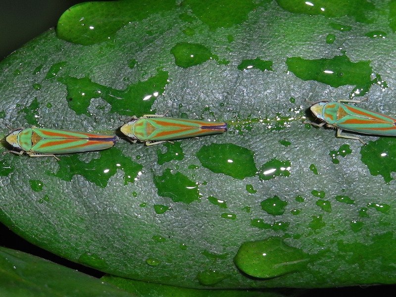 Die Rhododendronzikade gehört zu den Zwergzikaden. Die roten Streifen auf den Vorderflügeln machen sie unverwechselbar. Sie stammt aus Nordamerika und lebt bei uns auf Rhododendron.