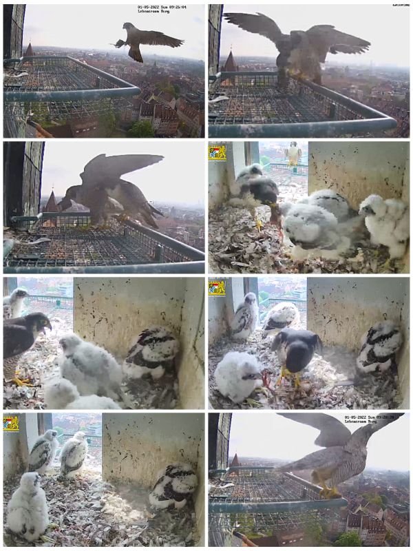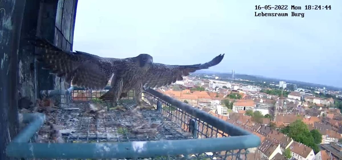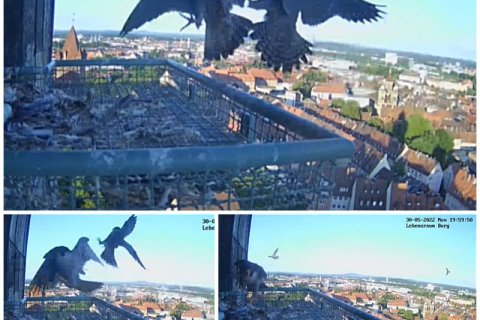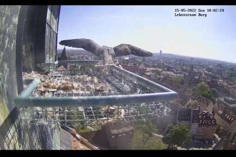 Wie geht es weiter? In den nächsten Wochen werden wir die Aufzeichnungen der live-Bilder sichten und Ihnen eine Auswahl der "besten Szenen der Brutsaison 2022" auf dieser Seite bereitstellen. Unsere Wanderfalken sind noch bis Ende August im Revier und häufig im Umfeld der Kaiserburg oder auch direkt am Brutplatz zu beobachten. Wir würden uns freuen, wenn Sie auch weiterhin Ihre Beobachtungen hier eintragen.